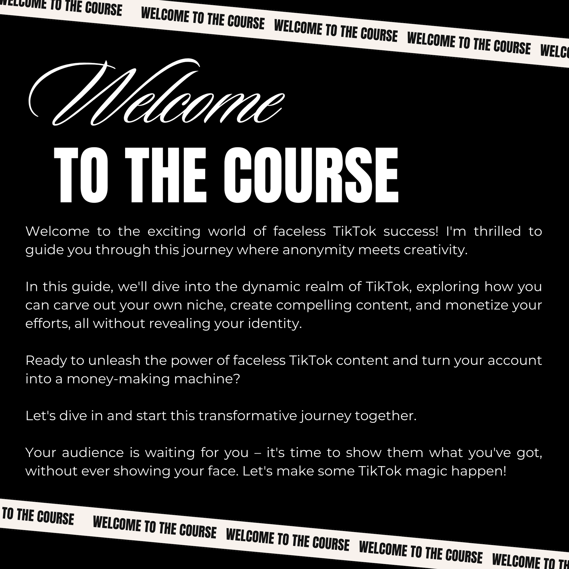 Embark on a journey to TikTok success that lets you shine without stepping in front of the camera! Our groundbreaking eBook is your key to building and monetizing a captivating TikTok presence while preserving your anonymity. Dive into innovative content creation strategies, growth hacks, and revenue-generating techniques tailored for those who prefer to stay behind the scenes. Whether you're an introverted creator or simply value your privacy, this guide empowers you to turn your TikTok into a thriving platform for expression and income. Join the faceless revolution and take your TikTok game to new heights!